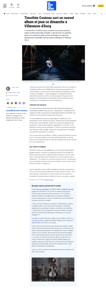 « Son dernier album […] propose des univers sonores étonnants par leur diversité. […] par exemple A Night Train To The French Riviera (Un train de nuit vers la Côte d’Azur) sur lequel on entendrait presque le bruit répétitif des roues des wagons cognant sur les traverses, Mechanical Horse (Cheval mécanique), sorte de chevauchée dans les grands espaces du far west avec le « ca-ta-clop » et les hennissements du cheval, ou bien encore A Touch Of Saffron (Un soupçon de safran), ballade indienne sur laquelle on jurerait entendre du sitar. Le tout est porté par l’élégance mystérieuse du violoncelle, tant dans les ambiances douces que celles très rythmées voire haletantes. »
